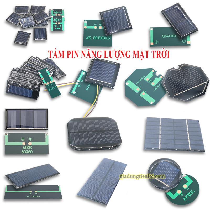 Tấm Pin Năng Lượng Mặt Trời nạp điện 1V/2V/3V/6V solar panel mini Pin mặt trời là pin sử dụng nguồn ánh sáng được phát ra từ mặt trời để tạo ra nguồn năng lượng cung cấp cho một số thiết bị như đèn led và các thiết bị điện tử sử dụng pin sạc. Pin mặt trời mini có kích