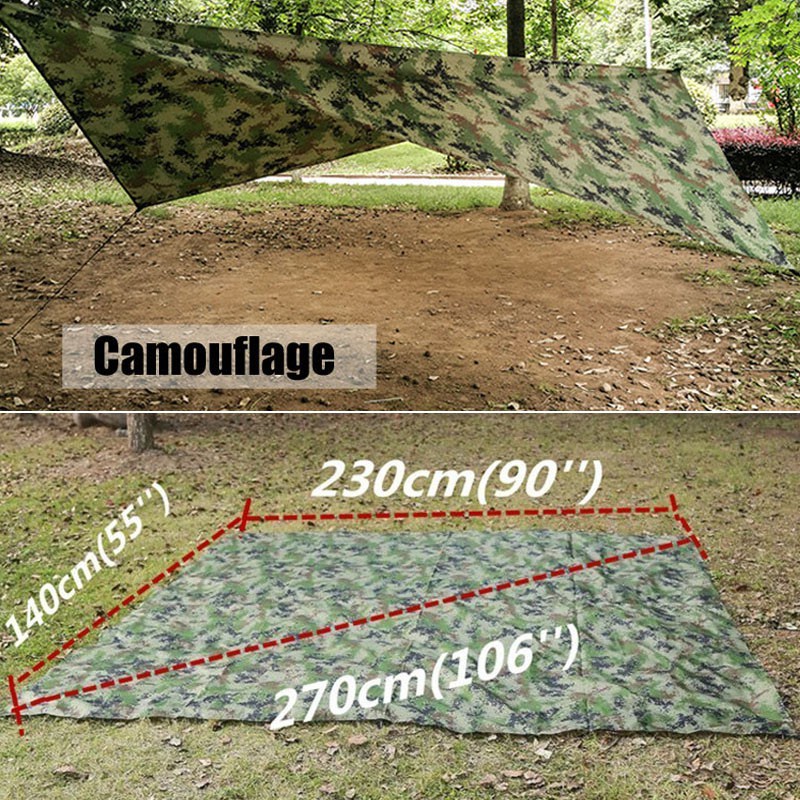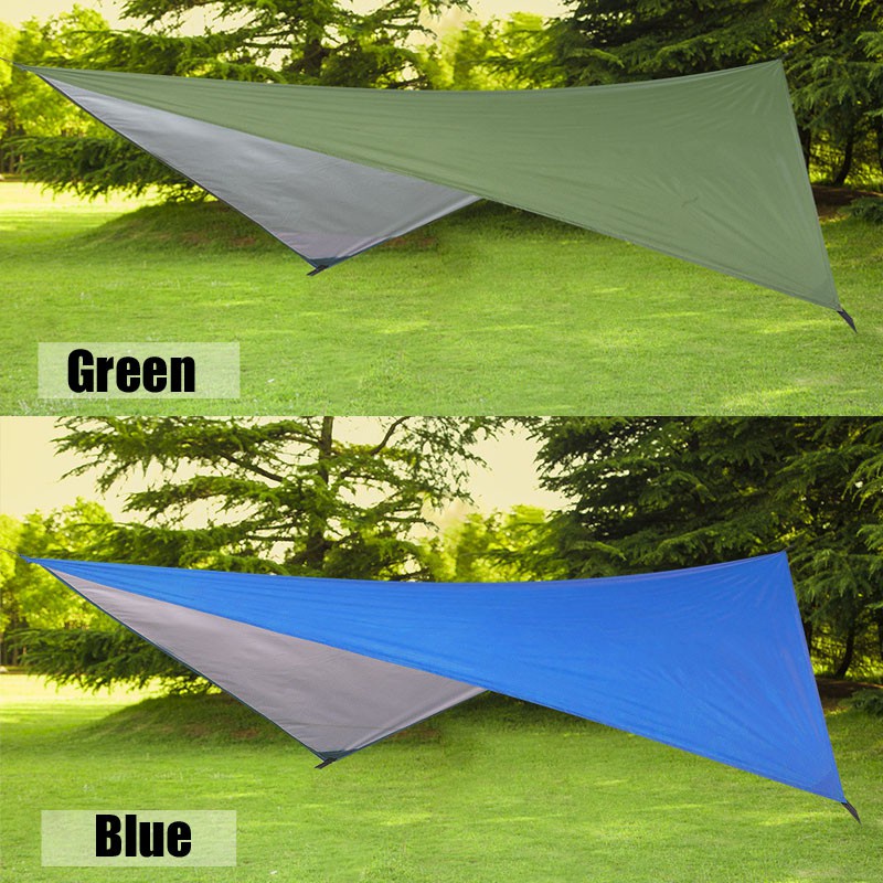 If you hate wild blood sucking mosquitoes; if you hate the hot sun, and no umbrellas are raining; if you want to take a break after hiking. Congratulations! Our items are perfectly suited to your requirements. When the night falls, you can hang the mosquito net on the ground so that you can avoid mosquito bites; When strong sunlight comes, you can set the sky screen to avoid strong ultraviolet radiation; When the sudden heavy rain comes, you can quickly set the sky screen, so you can avoid rain. Product 1: Hammock with Mosquito Net Product Size: 260cm*140cm/102inch*55inch Packaging Size: 20cm*26cm Material: 210T Nylon fabric, polyester mesh Maximum Safe Load: 200kg/441lb Weight: 700g Color:Camouflage,Army green,Apple green&Dark green,Yellow&Green,Grey&Orange,Blue,Blue&White,Sky blue&Blue,Grey&Blue,Pink&Blue,Pink,Black Pacakge including: Hommock with Mosquito Net*1 Nylon Rope*2 Carabiner*2 Tree Strap*2 Product 2: Camping Awning Tarp (Optional) Material: Waterproof polyester cloth,only back side of Green and Blue are paint silver Size:230cm*140cm/90inch*55inch Diagonal Size: 270cm * 270cm/106inch*106inch(Strongly recommended) Weight: 300g Color:Camouflage,Green,Blue Package including : Camping Awning Tarp*1 Wind Rope*4 Ground Nail*2 Ground Nail bag*1 Storage Bag*1