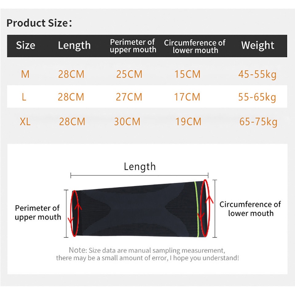 Thời gian giao hàng dự kiến cho sản phẩm này là từ 7-9 ngày Đặc điểm: 🔸Đúc một mảnh, vừa vặn để hấp thụ sốc 🔸Vải co giãn, mặc thoải mái 🔸Silicon chống trượt, thiết kế sóng đôi Thông tin chi tiết: 🔸Tên sản phẩm: Tất đeo bắp chân 🔸Chất Liệu: Nylon Silicon Spandex 🔸Màu sắc: Đen, Đỏ hồng, Xanh lam 🔸Dịp sử dụng: Thể dục, Bóng rổ, Bóng chuyền, Đi xe đạp, Chạy bộ, Chân ấm, v.v. 🔸Kích thước: M / L / XL Size Chiều dài Chu vi chu vi chu vi dưới miệng M 28-30cm 26cm 16cm L 28-30cm 28cm 18cm Xl 28-30cm 31cm 21cm Gói hàng bao gồm: 🔸1 * Tất đeo bắp chân (1 chiếc, không phải 1 đôi) Lưu ý: 🔸Do màn hình khác nhau và hiệu ứng ánh sáng, màu sắc sản phẩm thực tế sẽ khác so với hình ảnh 🔸Vui lòng cho phép sai số một chút do đo lường thủ công