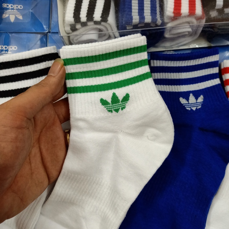 Tất Adidas Cổ Trung Nam Nữ Cao Cấp 3 Sọc Logo 3 Lá Hộp 5 Đôi Nhiều Màu