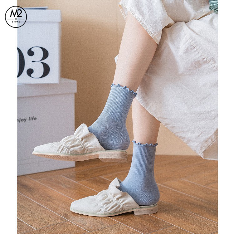 Tất nhún cổ bèo nữ chất liệu cotton Hàn Quốc phong cách Vintage thoáng mát M96