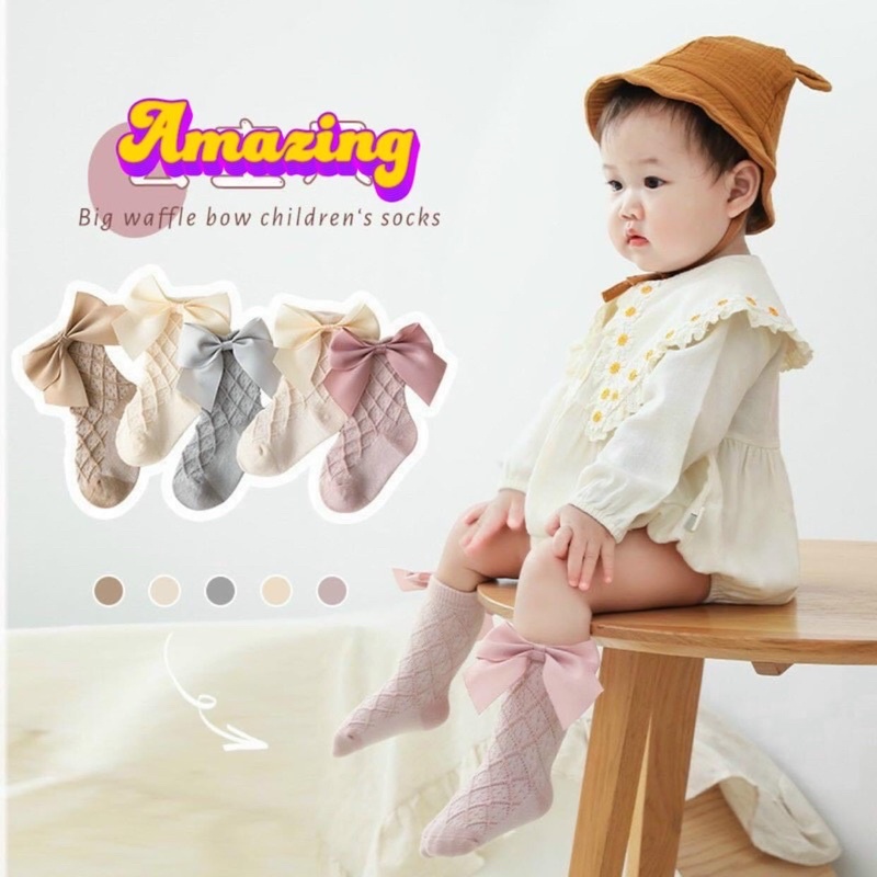 Tất/vớ cổ cao lưới đính nơ phong cách Hàn Quốc cao cấp Nemo Baby cho bé 0-5 tuổi