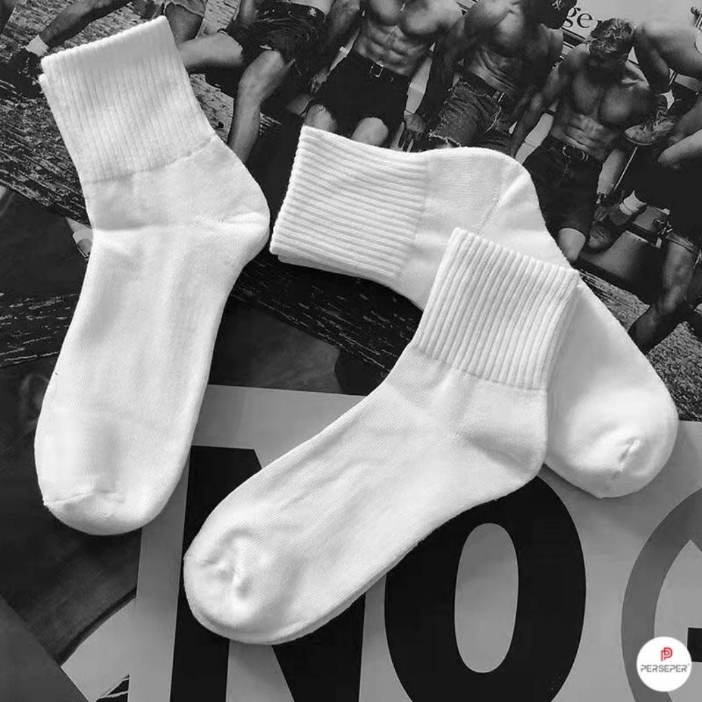 Tất Vớ Trơn Màu Trắng Đen Cổ Trung Nam Nữ Vải Cotton Thời Trang Hàn Quốc