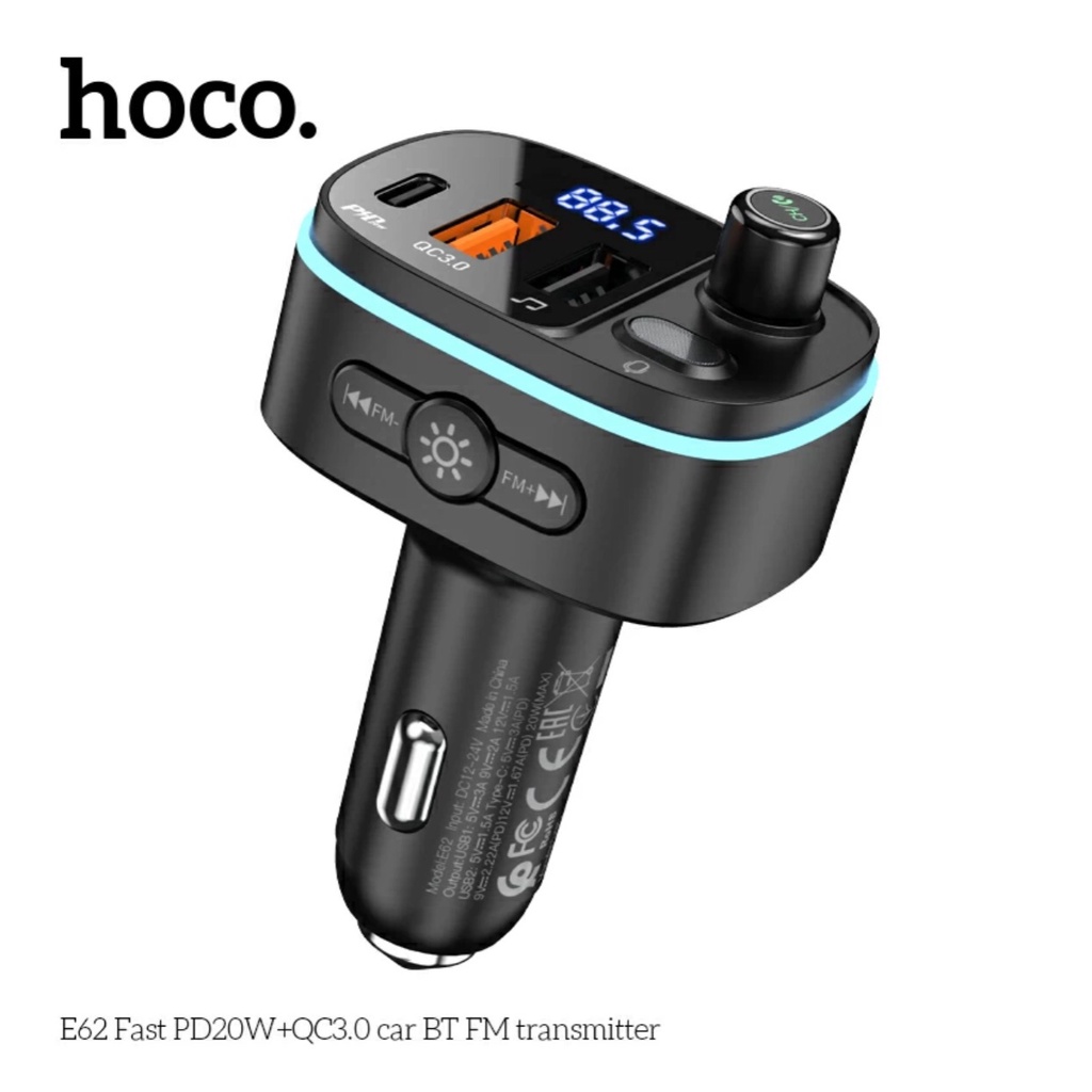 Thông tin kỹ thuật Sản Phẩm Tẩu sạc ô tô Hoco E62 1, kích thước: 84 * 50 * 39mm; trọng lượng: 41g 2. Bluetooth 5.0; JL AC6966 3. Đầu ra: Loại-C: PD 20W; USB-A: QC 18W; Giao diện âm nhạc USB: 5V / 1.5A 4. Hỗ trợ các giải pháp sạc nhanh như PD20W, QC, FCP, AFC, v.v. 5.