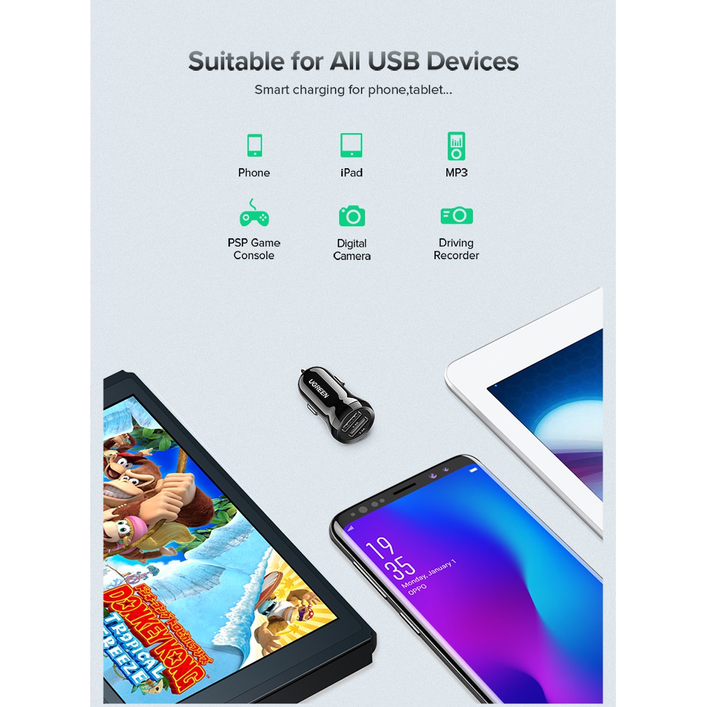 Tẩu sạc UGREEN hai cổng USB 4.8A cho xe hơi chất lượng cao