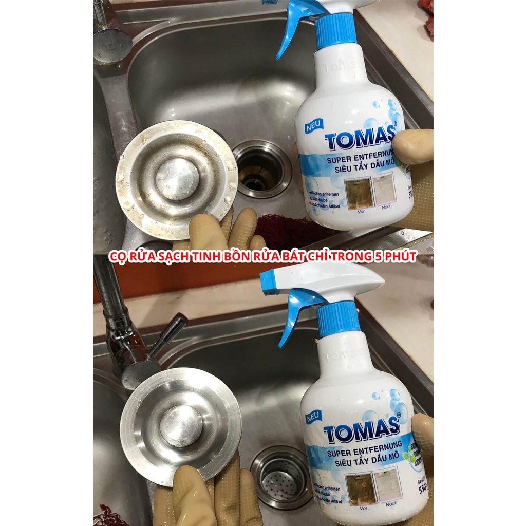 - Tẩy dầu mỡ bếp TOMAS là sản phẩm chuyên dụng, chuyên dùng tẩy sạch dầu mỡ cháy két bám bẩn lâu ngày trên lưới lọc máy hút mùi, mặt bếp ga, bếp từ, tường gạch ốp, bồn rửa bát trong nhà bếp. Hàng công ty chính hãng, sản xuất tại Việt Nam, có chứng nhận kết quả thử ngh
