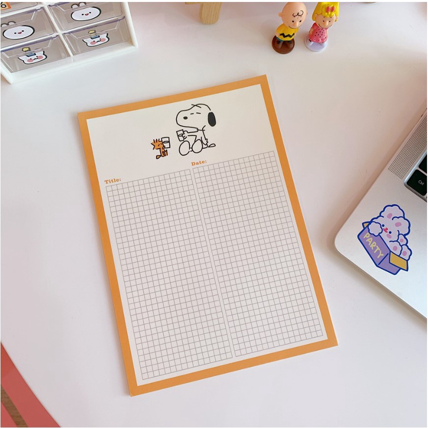 Tập 30 tờ giấy ghi chú note khổ B5 hình snoopy có 2 màu đen và vàng
