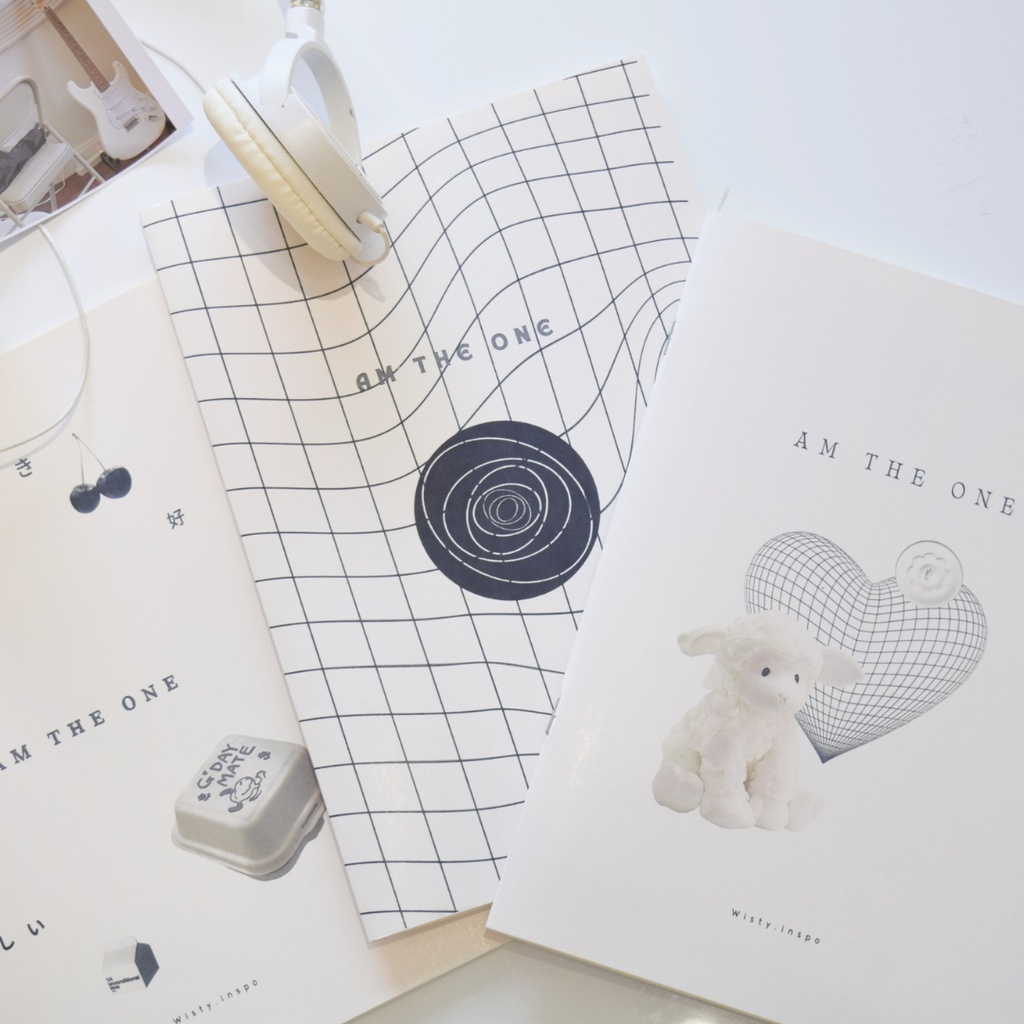 Tập vở học sinh B5 bìa phong cách Aesthetic đồ vật trắng đen 80gsm ruột kẻ ngang-ô vuông