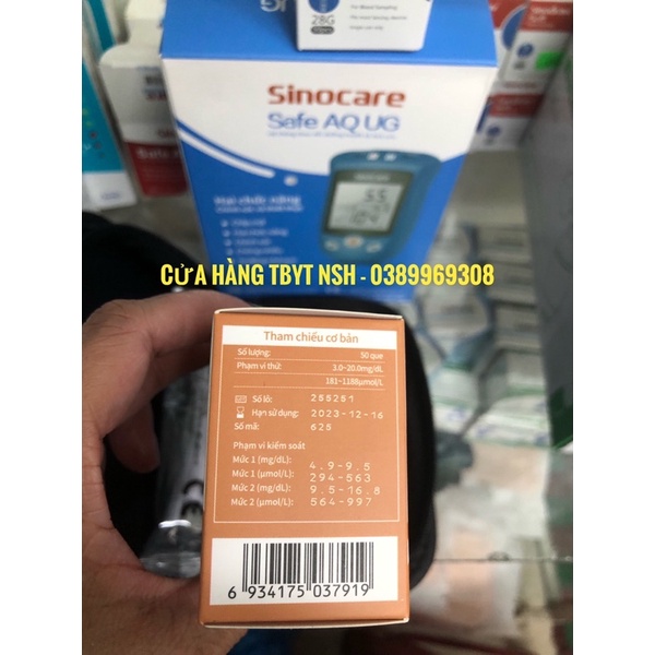MỘT BỘ GỒM CÓ + 50 que thử đường huyết ( 2 lọ 25 que) + 50 que Axit Uric gout ( 2 lọ 25 que) + 50kim + Máy + bút chích máu + bao da Máy Sinocare Safe AQ UG 2 trong 1 là thiết bị hữu ích để kiểm tra tổng thể 2 thành phần trong máu bao gồm: Đo đường huyết và Ait Uric (