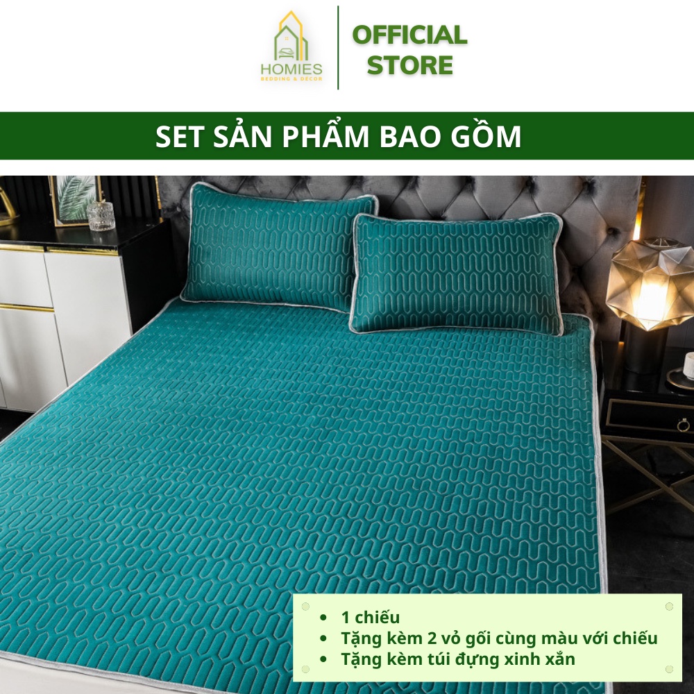 Tặng Kèm 2 Vỏ Gối - Chiếu Điều Hòa Cao Su Non HOMIES Bedding & Décor Thái Lan Nhập Khẩu Mát Lạnh Mùa Hè