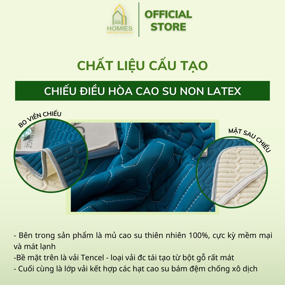 TÊN SẢN PHẨM : Chiếu điều hòa cao su non HOMIES vải tencel mát lạnh ĐẶC TÍNH CỦA SẢN PHẨM ✔ CỰC KỲ MÁT LẠNH chính là từ ngữ dùng để mô tả dòng chiếu được cấu tạo từ mủ cao su tự nhiên 💦 💦 ĐIỀU ĐẶC BIỆT: Sử dụng sản phẩm này không cần dùng điều hòa, ✔ Mùi thơm tự nh