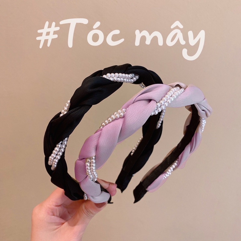 Băng Đô Cài Tóc Bản Rộng Đính Ngọc Trai Trắng Đen Phong Cách Hàn Quốc Cổ Điển Thời Trang Cho Nữ