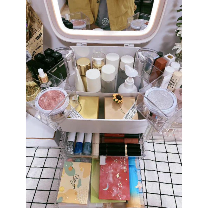 Tủ đựng mỹ phẩm đa năng tích hợp rất nhiều ngăn Kích thước 29x30x21 theo thứ tự rộng cao sâu. Đựng son, phấn, nước hoa, toner....,cọ trang điểm Ngoài ra hai cánh tủ còn thêm kệ treo trang sức rất tiện. Tay cầm chắc chắn có thể mang ra ngoài. Hộp tích hợp gương đèn LED tiện cho các nàng trang điểm buổi tối. Đèn led sạc tích điện. sạc 1 lần dùng được rất lâu. Đèn có 3 chế độ sáng nha các nàng Hàng bọc xốp định hình cẩn thận. Nhựa ABS CHẤT LƯỢNG CAO. HÀNG NHÀ MÌNH LÀ LOẠI SIÊU DÀY, XỊN CỨNG CÁP CHỨ KHÔNG PHẢI LOẠI NHỰA MỎNG ỌP ẸP ĐÂU Ạ. SHOP CAM KẾT HOÀN TIỀN NẾU HÀNG LỖI HỎNG. Hàng có sẵn #hopdungmypham#hopmypham#hopdungmyphamchongbui#hopdungmyphamcoquayxach CHÍNH SÁCH BẢO HÀNH. DREAM HOUSE BẢO HÀNH SẢN PHẨM TRONG VÒNG 1 THÁNG ĐẦU SỬ DỤNG TRONG TRƯỜNG HỢP HÀNG BỊ VỠ DO VẬN CHUYỂN, HỎNG, LỖI PHÍA NHÀ SẢN XUẤT. QUÝ KHÁCH NHẬN HÀNG CÓ VẤN ĐỀ VUI LÒNG ĐỂ LẠI SỐ ĐIỆN THOẠI ĐỂ SHOP BẢO HÀNH SẢN PHẨM