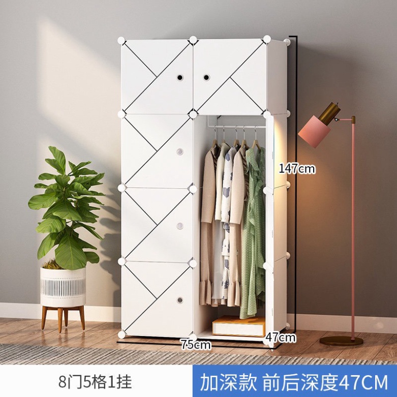 🍀TỦ NHỰA QUẦN ÁO LẮP GHÉP 8 Ô SÂU 47cm. Tặng kèm 1 treo đồ. Thân trắng toàn bộ.