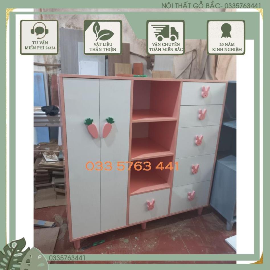 Tủ quần áo gỗ dành cho bé kích thước 120x120cm màu sắc đáng yêu - giá gốc tại xưởng