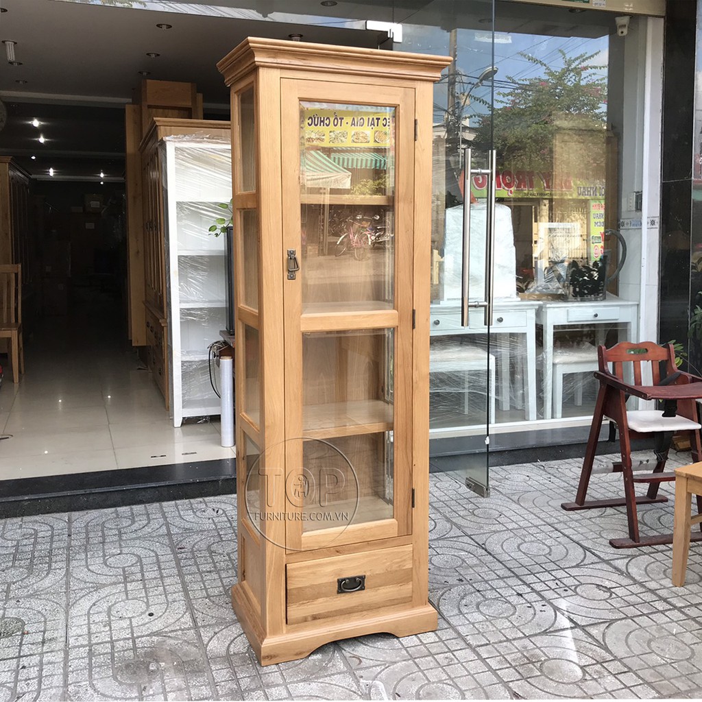 Tủ trưng bày gỗ sồi 1 cánh kính 1 ngăn kéo
