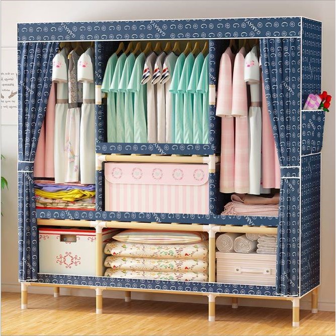 Tủ quần áo vải 4 khung gỗ bọc to cỡ 18mm loại tốt để quần áo Hàng Loại 1 có lót vải