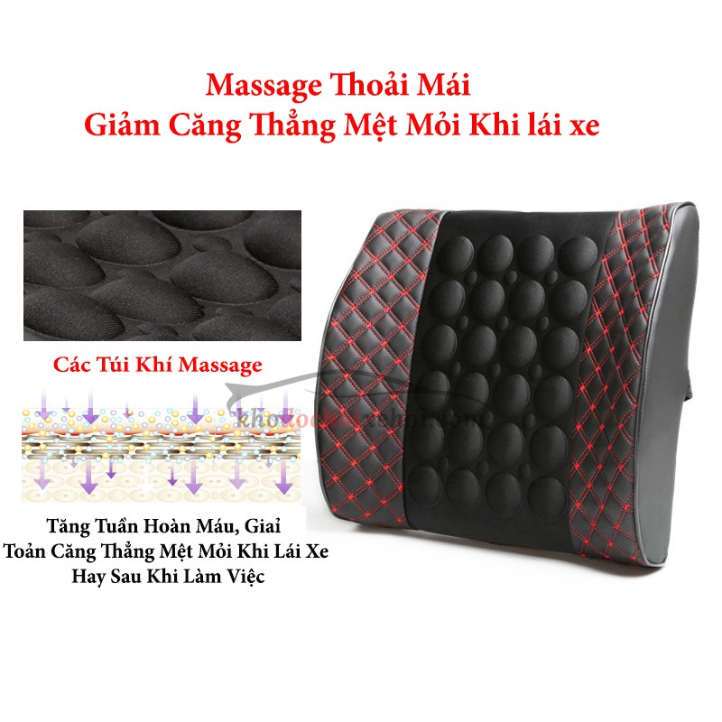 Tựa Lưng Massage Ô Tô - Cắm Điện Tẩu Nguồn 12V - 3 Chế Độ Rung - Thư giãn giảm đau mỏi lưng