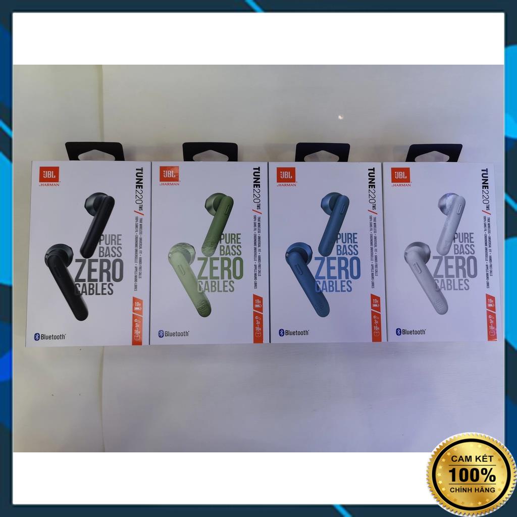Tai nghe bluetooth JBL Tune 220 bản Quốc Tế tai nghe không dây JBL bass treble đỉnh cao dùng cho IOS Android - Tai nghe Bluetooth JBL sử dụng Bluetooth 5.0 mới nhất, cho khoảng cách sử dụng lên đến 10m, tốc độ kết nối nhanh, tiết kiệm pin cho thời lượng nghe lâu. Tai nghe không dây tích hợp công nghệ JBL Pure Bass Sound trên sản phẩm, cho âm bass dày, mạnh mẽ, chắc chắn. Với màng loa 12.5 mm giúp tai nghe có thể tái tạo được âm thanh tốt nhất, tăng trải nghiệm cho người dùng. *) Ưu điểm nổi bật - Thiết kế earbuds sành điệu, trẻ trung và bắt mắt - Trang bị Bluetooth 5.0 cho tai nghe kết nối nhanh và ổn định, tiết kiệm pin - Thời gian sử dụng 3 giờ, hộp sạc cung cấp thêm 16 giờ cho tai nghe bluetooth jbl - Tự động kết nối sau lần kết nối đầu tiên - Tương thích với các thiết bị bluetooth: tai nghe iphone, sony, samsung, realme, xiaomi, máy tính bảng,laptop... *) Hướng dẫn sử dụng - Kết nối Bước 1: Lấy 2 tai nghe jbl ra khỏi dock sạc Bước 2: Hai tai nghe sẽ tự nhấp nháy đèn để tự liên kết với nhau, bạn đợi 1-2s 1 bên tai nghe ngắt nháy đèn Bước 3: Bật thiết bị bluetooth trên điện thoại, và chọn thiết bị Tune220tws để kết nối với tai nghe *) Thông số sản phẩm - Loại sản phẩm: Tai nghe bluetooth không dây - Tên sản phẩm: Tai nghe JBL Tune 220 tws - Khoảng cách bluetooth kết nối ổn định thực tế : 5-10m - Thời gian nghe nhạc : ~3 tiếng - Thời gian sạc cho hộp tai nghe: ~ 1 tiếng - Bộ sản phẩm bao gồm: 2x tai nghe, 1x dây sạc, 1x dock sạc, 1x sách hướng dẫn *) Chính sách của shop - Bảo hành 6 tháng 1 đổi 1 miễn phí trong 30 ngày (nếu lỗi từ nhà sản xuất) - Khi mở sản phẩm các bạn vui lòng quay lại video quá trình mở để được đảm bảo 100% đổi lại sản phẩm mới nếu Shop giao nhầm bị lỗi, nhầm hàng hoặc hư lại trong trong quá trình vận chuyển - Đừng ngại liên hệ shop qua kênh chat nếu các bạn cần hỗ trợ nhé ♥️ #tainghekhongday #tainghebluetooth #tainghejbl #tainghebluetoothjbl #tainghekhôngdayjbl #taingheiphone #tainghesony #tainghebluetoothsamsung #tainghebluetoothxiaomi #tainghekhôngdâysamsung #tainghekhôngdâyiphone #tainghekhôngdâysony