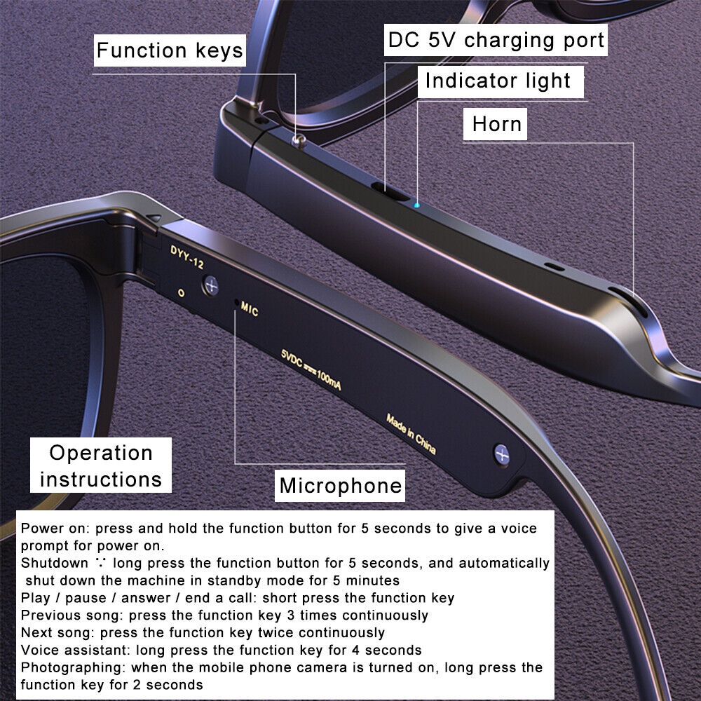 Tai Nghe Bluetooth Không Dây Kính Mát Thông Minh Dyy-12 Kết Nối Bluetooth 5.0 Hỗ Trợ Nghe Gọi Chụp Ảnh