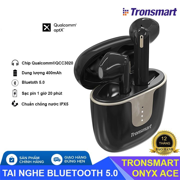 Tai nghe Bluetooth không dây Tronsmart Spunky/Neo/Ace chống nước IPX5 tích hợp công nghệ hủy tiếng ồn cao cấp ===>LƯU Ý :phiên bản này ko hỗ trợ app * Điểm nổi bật - Chip Qualcomm® :Chip Qualcomm® chính hãng đảm bảo truyền phát âm thanh ổn định và không mất dữ liệu. Nó có thể cung cấp kết nối ổn định và truyền nhanh hơn với độ trễ cực thấp khi bạn đang chơi game, cũng như tiêu thụ điện năng thấp cho thời gian chơi lâu hơn. - Studio chất lượng âm thanh lossless: Công nghệ Qualcomm® aptX ™ hoạt động với các trình điều khiển được phủ graphene tùy chỉnh để cung cấp âm thanh độ trung thực cao một cách dễ dàng với trải nghiệm ở cấp độ CD. - Định dạng giải mã âm thanh chất lượng cao dưới trình điều khiển 6 mm - aptX ™: Âm thanh giống như CD như phòng thu ban đầu (Âm thanh lossless aptX ™ chỉ hỗ trợ các thiết bị tương thích đó.) - AAC: Âm thanh cân bằng và chi tiết cho - Trình điều khiển iOS 6 mm: Âm trầm phong phú, âm trung chi tiết và âm cao rõ ràng - Các công nghệ Qualcomm® DSP & cVc ™ 8.0 phối hợp hoàn hảo để đảm bảo tối đa các cuộc gọi rảnh tay rõ ràng hơn với tối thiểu tiếng ồn xung quanh. - CVC 8.0: Loại bỏ nhiễu nền cho các cuộc gọi rõ ràng hơn. - DSP: Giảm nhiễu tần số cao & thấp cho âm thanh phát ra nhiều hơn. - Chế độ đơn âm hoặc âm thanh nổi :Đơn giản chỉ cần lấy một trong hai tai nghe ra để vào nghe đơn âm. Hoặc lấy cả hai ra để phát trực tiếp âm thanh nổi. - 24 giờ chơi :Tận hưởng 7 giờ chơi với một lần sạc đầy. Lên đến 24 giờ nghe với hộp sạc để giữ cho bạn đi suốt cả ngày. -Nút bấm cảm ứng :Thiết kế bảng điều khiển cảm ứng có độ nhạy cao cho phép bạn kích hoạt tất cả các tính năng chỉ bằng một cú chạm nhẹ mà không cần nhấn áp lực vào tai. Bạn có thể nhấn để phát và tạm dừng bài hát, tăng giảm âm lượng, nhận cuộc gọi rảnh tay và hơn thế nữa. - Hoàn toàn chống mồ hôi : IPX5 chống mồ hôi, bắn nước và mưa, mang đến trải nghiệm nghe không bị xáo trộn. * Thông số kỹ thuật tai nghe Bluetooth Tronsmart Onyx Neo APTX: - Bluetooth: phiên bản dạng giải mã âm thanh Qualcomm® QCC3020 : aptX, AAC, SBC - Cấu hình Bluetooth: HFP / HSP / AVRCP / A2DP - Khoảng cách kết nối bluetooth: Lên đến 15 mét -Thời gian chơi nhạc :Tai nghe: lên đến 7 giờ - Sạc trường hợp: lên đến 24 giờ - Pin TAI NGHE : 35 mAh - Hộp sạc: 350 mAh - đầu vào: Tối đa 5V / 500mA. - Thời gian sạc: +Tai nghe : 50 phút + Hộp sạc: 2 giờ - Kích thước tai nghe: 27 x 17 x 8 mm - Kích thước hộp sạc: 63 x 32 x 43 mm Bộ sản phẩm bao gồm: 1 x hộp sạc Tronsmart Onyx 2 x Tai nghe Bluetooth Tronsmart Onyx 3 x Cặp Eartips (một cặp đã được đặt trên tai nghe) 1 x Cáp sạc 1 x Hướng dẫn sử dụng ===================== CAM KẾT KHÁCH HÀNG KHI MUA HÀNG TẠI VINET SHOP: - Hàng được bảo hành theo tem nhà bán hàng - Hàng y hình 100% ( trong 7 ngày cho đổi hàng nếu lỗi sản xuất) - Không bảo hành sản phẩm nước vào , vỡ, cháy nổ do khi sử dụng, sản phẩm còn nguyên vẹn. - Được bảo hành 6 tháng #TAINGHEBLUETOOTH #TAINGHEtronsmart #vinetteam #vinetteamk10 #bluetoothk10 #k10 #tainghebluetooth #tainghekhong