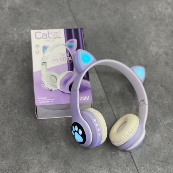 Tai nghe bluetooth tai mèo VZV 23M – Có đèn led -có dây jack- có micro – hỗ trợ điều chỉnh âm lượng