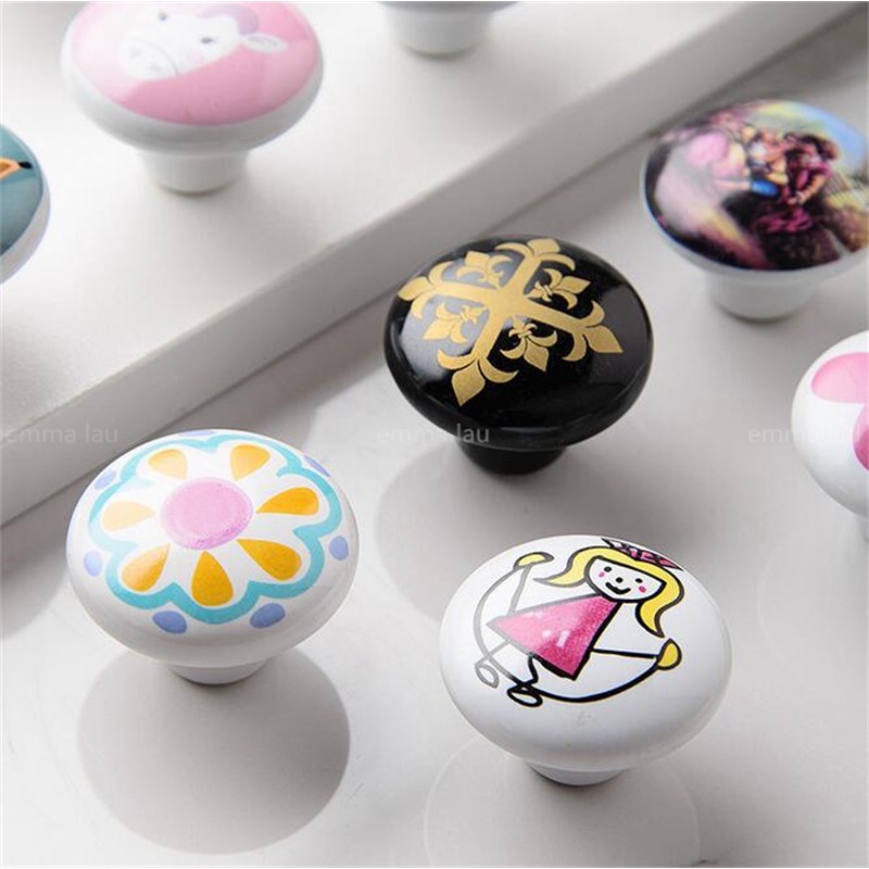 Tay Nắm Cửa Tròn Bằng Gốm Họa Tiết Dễ Thương