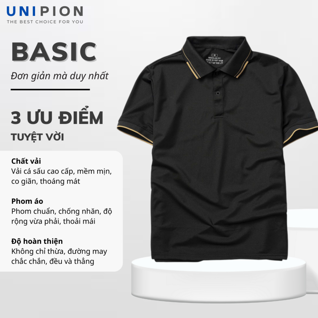 Team ĐEN nhà UNPION - BST Áo Polo Đen vải cá sấu bo cổ kèm hộp quà tặng