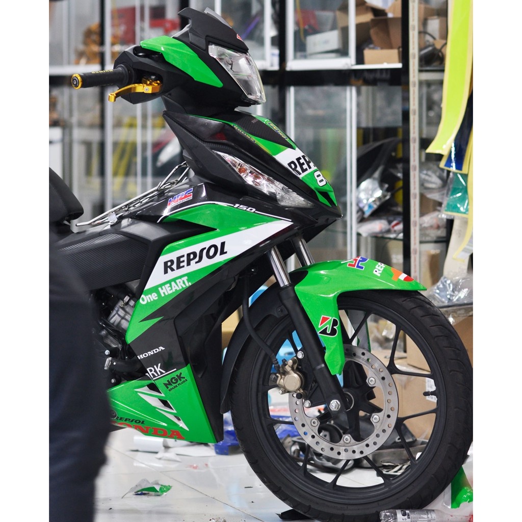 Tem Dán Xe Winner V1 RS150 Màu Trắng Đỏ Đen Mẫu Tròn Hoa Văn In Công Nghệ Nhật Chuẩn Form Tự Dán Ko Cần Thợ -