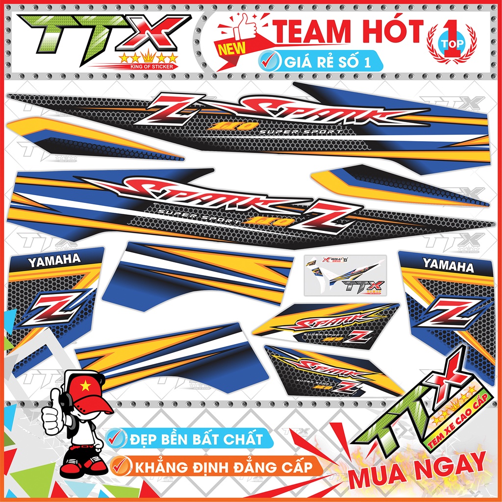Tem rời sirius spark 110 , Team chế sirius dán xe màu xanh nền đen chữ đỏ siu đẹp , Shop TTX Tem xe sirius mã