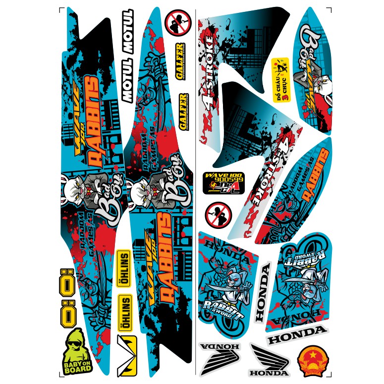 Tem rời Wave a 50 - 100 cc Đời 2006-2016 Mẫu Thỏ Rabbit Phiên Bản Các Màu 900599