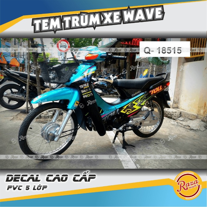 Tem Trùm xe Wave nhỏ, Wave ZX, Wave đời đầu màu hồng trắng | Decal PVC 5 lớp cao cấp | Mã tem: WAV 706