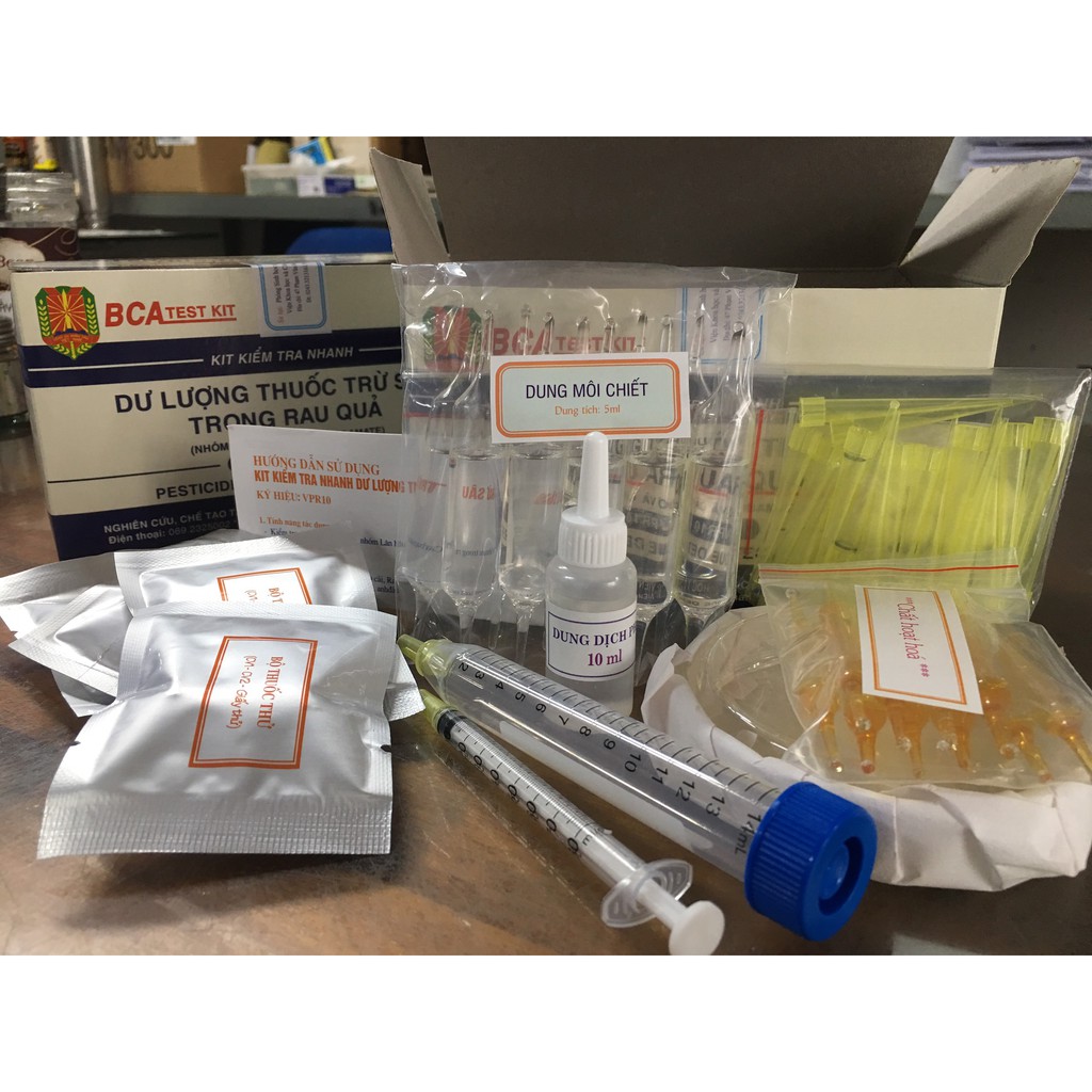 Kit kiểm tra nhanh dư lượng thuốc trừ sâu (Nhóm Photphat và Cacbamat) Kí hiệu: VPR10 Hãng sản xuất: Viện kỹ thuật hóa sinh và tài liệu nghiệp vụ – Bộ Công an Kit kiểm tra nhanh dư lượng thuốc trừ sâu trong rau quả dùng để kiểm tra nhanh thuốc trừ sâu nhóm lân hữu cơ v