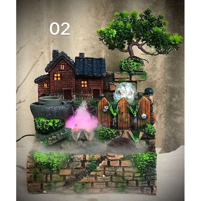 Thác nước phong thuỷ, tiểu cảnh và bể cá để bàn tạo sương khói hòn non bộ trang trí có dây cắm điện máy bơm nước cao cấp