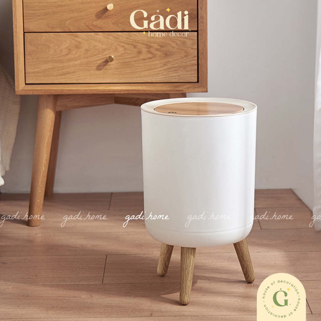Thùng Đựng Rác Cao Cấp 1 Chạm Nắp Vân Gỗ Gadi Home – Thùng rác decor phong cách hàn quốc | UMBO