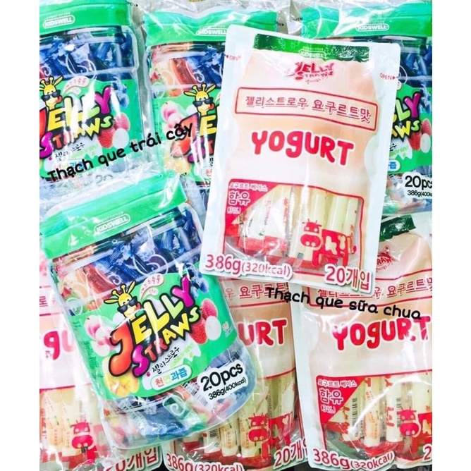 🏵👑 𝐓𝐇𝐀̣𝐂𝐇 𝐑𝐀𝐔 𝐂𝐀̂𝐔 𝐐𝐔𝐄 𝐘𝐎𝐆𝐔𝐑𝐓 𝐊𝐈𝐃𝐒𝐖𝐄𝐋𝐋 𝐉𝐄𝐋𝐋𝐘𝐒𝐓𝐑𝐀𝐖𝐒 𝐇𝐀̀𝐍 𝐐𝐔𝐎̂́𝐂 👑🏵 🌸 Em về 2 hương trái cây và sữa chua ạ 😍😍😍 🌸 xuất sứ: Hàn Quốc 🇰🇷 Thạch sữa chua với hương vị thơm mát, vị chua nhẹ từ sữa lên men. 🇰🇷 Thạch trái cây mix vị gồm đào, vải, việt quốc, xoài. 🇰🇷 Chiết xuấ
