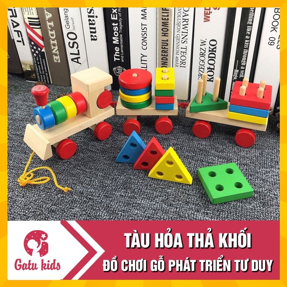 Đồ chơi gỗ thông minh montessori xe kéo thả hình khối chữ số cho bé phát triển trí tuệ Kidhouse.vn