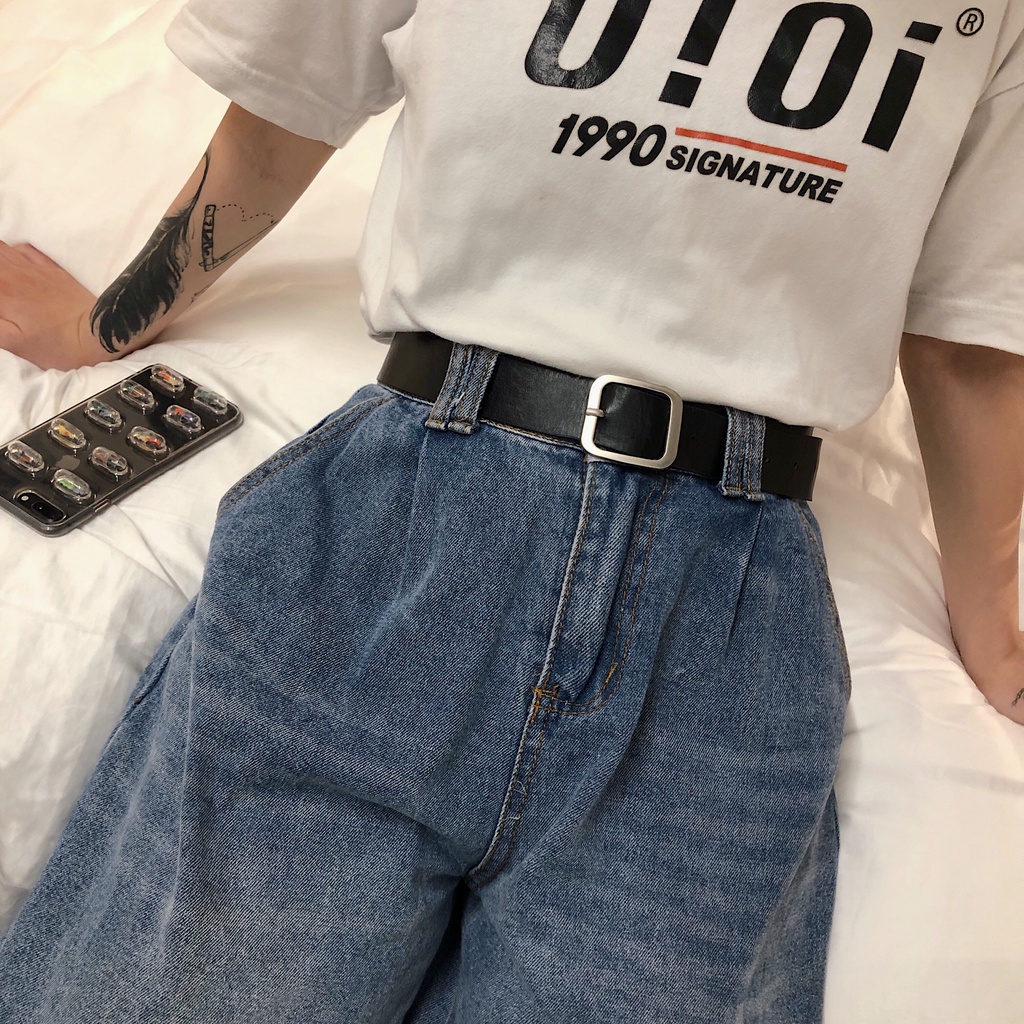 Thắt lưng da pu màu đen cỡ nhỏ khóa vuông thời trang Hàn Quốc 199867