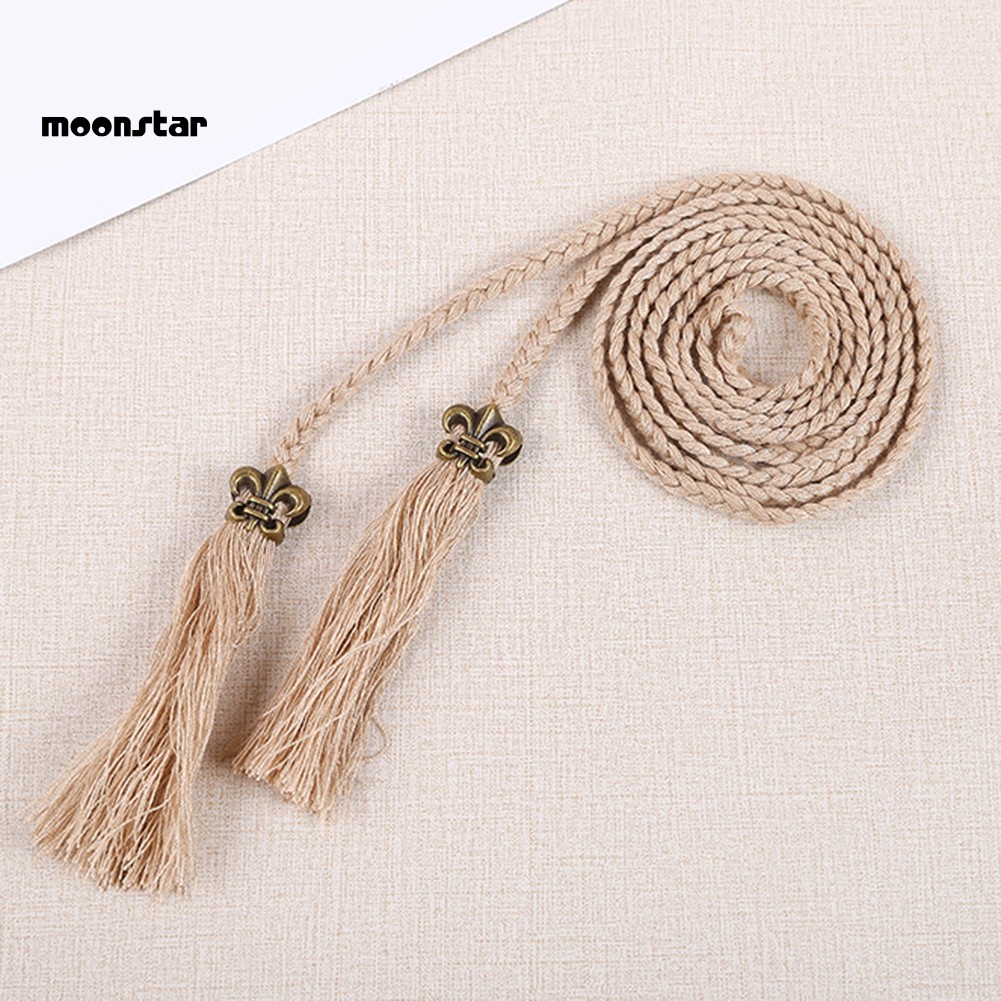 Thắt lưng handmade dây bện bản nhỏ kiểu tua rua phong cách dân tộc thời trang cho nữ