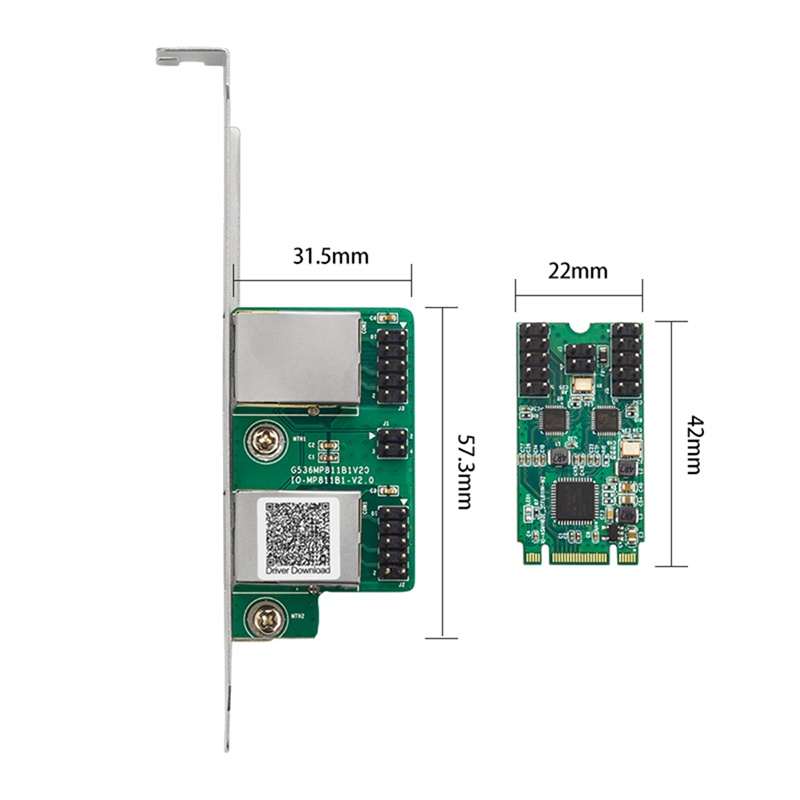 Thẻ Mạng Gigabit M.2 Sang Cổng Kép 2.5G 2 Cổng RJ45 2500 Mbps 1000M B / M 2242 Kích Thước