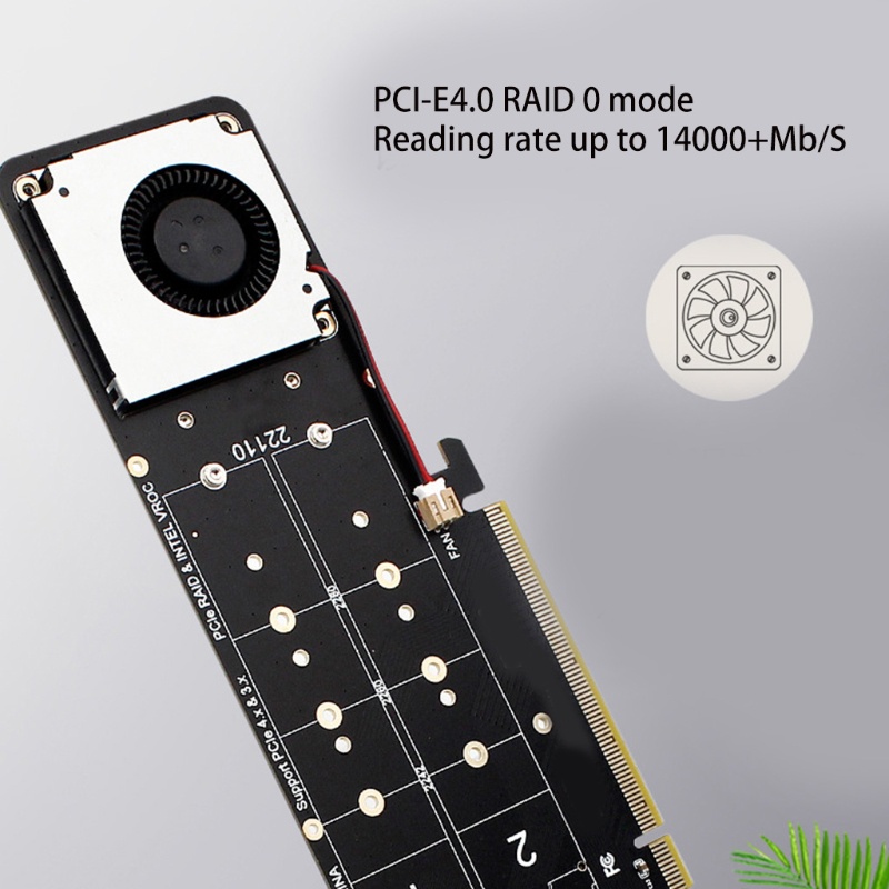 14000Mb/s NVME Adapter M.2 NVME M Key to PCIE 4.0 X16 Expansion Riser Card RAID Features: 100% brand new and high quality Adopt high-end PCB circuit board, surface gold plating process, strong wear resistance, oxidation resistance, and high fire rating. Support PCI-E