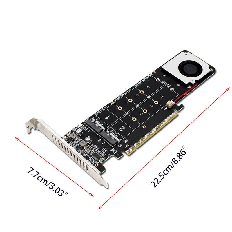 14000Mb/s NVME Adapter M.2 NVME M Key to PCIE 4.0 X16 Expansion Riser Card RAID Features: 100% brand new and high quality Adopt high-end PCB circuit board, surface gold plating process, strong wear resistance, oxidation resistance, and high fire rating. Support PCI-E split or PCI-E Raid function;NVME SSD and M. 2 PCI-E interface device Front and back sides with 4 bays compatible with 22110 2280 2260 2242 specifications, Support 4 x 4 full channel full speed Brings you full-speed PCI-E4.0 RAID 0 mode, read speed up to 14000mb/s Double-sided heat dissipation at the same time, two speeds can be adjusted, transmission is more stable Equipped with full-height half-height baffles, support 2U server, fit for small chassis installation Specification: Item: Double-sided 4-disk NVME RAID PCI-E X16 Split Card Support Hard Disk: SSD/ M.2 PCI-E Device with M.2 NVME Protocol Transmission Speed: 4x32Gb 14000+Mb/s Size: approx 225x77mm/8.86x3.03in Package Includes: 1x Adapter 1x Manuer 1x Cabinet Screw 8x Screws (2 Kinds/4pcs each) 1x Screw Driver 1x Full Size Baffle 1x Half Size Baffle note: This product can run 4 NVMEs at the same time, but the motherboard must support PCIE signal splitting Due to the different monitor and light effect, the actual color of the item might be slightly different from the color showed on the pictures. Thank you! Please allow 1-2cm measuring deviation due to manual measurement.