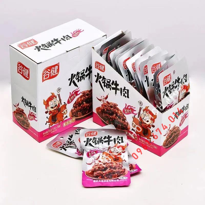 Thịt Bò Khô Sợi, Khô Bò Miếng Cay Ngon Thơm Đậm Vị Trùng Khánh, đồ ăn vặt Trung Quốc, hộp 30 gói