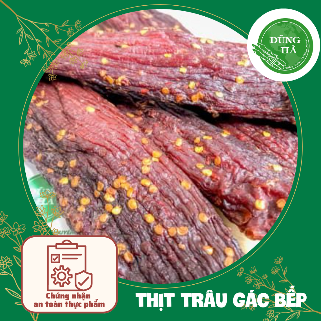 Thịt trâu gác bếp hiền vinh Thịt trâu sấy khô, được tẩm gia vị đặc biệt dậy mùi hạt dổi, mắc khén, sả, tỏi , ớt Bảo quản: Shop sẽ gửi kèm giấy hướng dẫn bảo quản và hướng dẫn cách dùng theo sản phẩm. Cách dùng: Thịt đã được làm chín , có thể dùng trực tiếp . Nếu khách muốn an mềm hơn , Khi ăn chỉ cần cho vào lò vi sóng 2-3 phút hoặc hấp cách thuỷ, rồi dùng chày hay búa đập thịt đập cho mềm, xé sợi và chấm cùng chẳm chéo hoặc tương ớt. Hạn dùng: 12 tháng kể từ ngày sản xuất Giá sản phẩm trên Tiki đã bao gồm thuế theo luật hiện hành. Bên cạnh đó, tuỳ vào loại sản phẩm, hình thức và địa chỉ giao hàng mà có thể phát sinh thêm chi phí khác như phí vận chuyển, phụ phí hàng cồng kềnh, thuế nhập khẩu (đối với đơn hàng giao từ nước ngoài có giá trị trên 1 triệu đồng).....