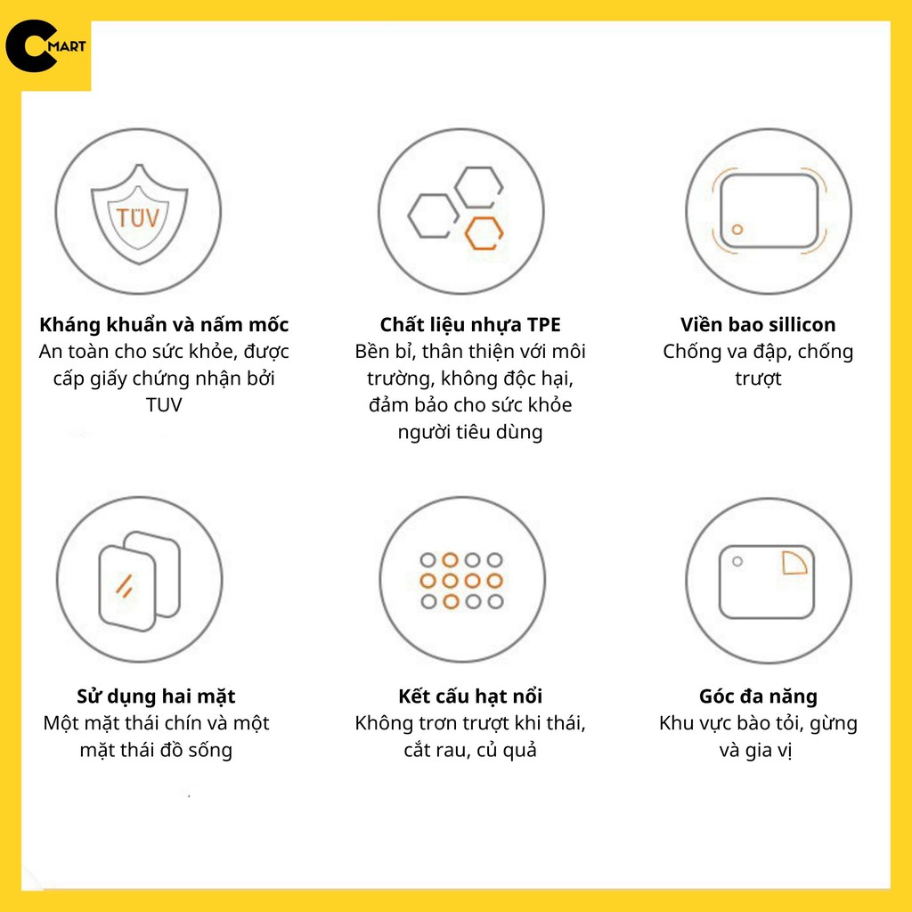 𝗨̛𝘂 𝘃𝗶𝗲̣̂𝘁 𝗰𝘂̉𝗮 𝘀𝗮̉𝗻 𝗽𝗵𝗮̂̉𝗺: - Chất liệu thớt làm từ nhựa TPE: Hạt nhựa TPE chính là một vật liệu đàn hồi nhiệt dẻo. Có tính đàn hồi tốt, rất mềm và có tính dẻo hơn hạt cao su. Chính vì vậy, loại vật liệu này có đặc tính đàn hồi nhiệt dẻo, đồng thời có tính chất của