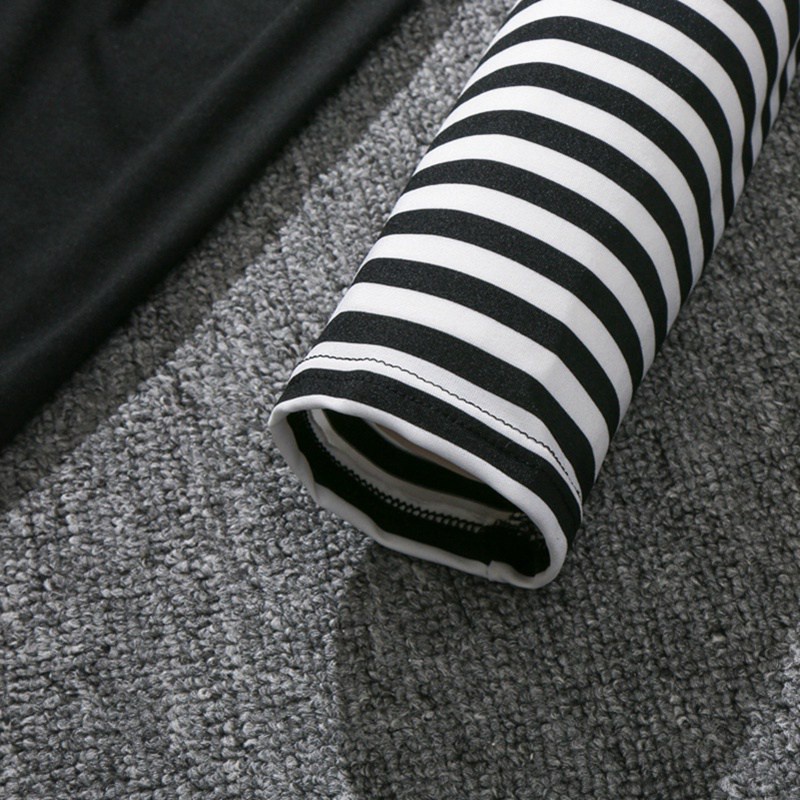 Thời Trang Áo Thun Tay Dài Cổ Tròn Giả 2 Lớp Họa Tiết Kẻ Sọc Trắng Đen Cho Nam Và Nữ