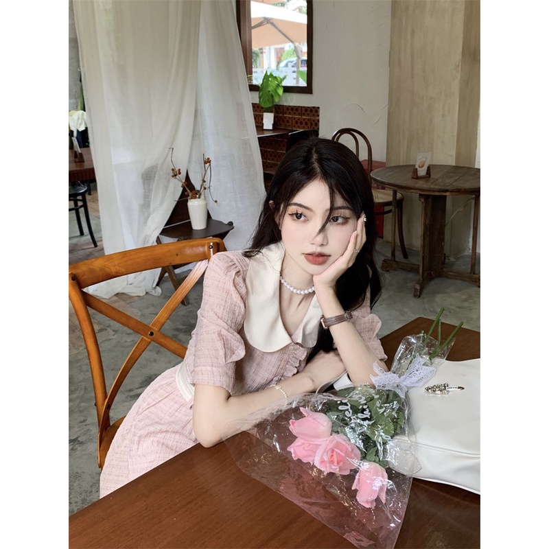 Thời Trang Bộ Áo Tay Phồng Cổ Búp Bê + Chân Váy Dài Dáng Ôm Phong Cách Hàn Quốc Xinh Xắn Cho Nữ