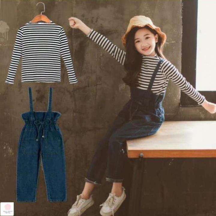 Thời trang cho bé gái 14 tuổi ☑️ Set áo thun và quần yếm ☑️ yếm quần cho bé gái 12 tuổi 30kg 35kg 40k