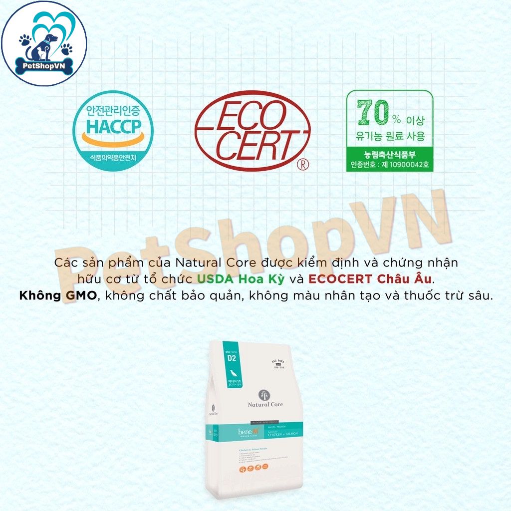 [DINH DƯỠNG CAO] Bao 5Kg Thức Ăn Hữu Cơ Cho Chó NATURAL CORE BENE M50 D2 Loại Hạt Khô Vị Thịt Gà, Cá Hồi, Rau Củ phù hợp với mọi giống chó, mọi độ tuổi. Thức ăn hữu cơ Natural Core Bene M50 là sản phẩm dinh dưỡng phù hợp với những chú chó được nuôi trong nhà. Được c