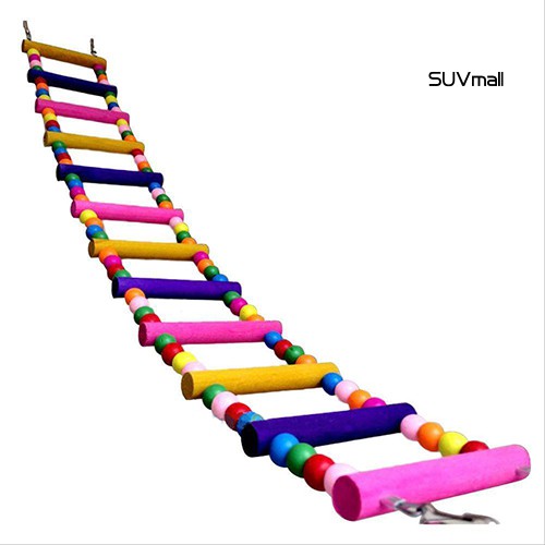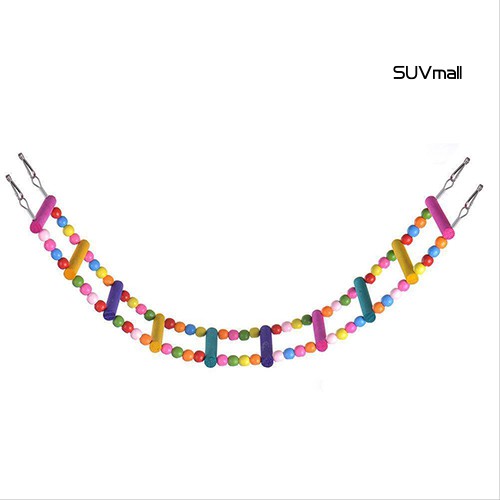 Đồ Chơi Thang Leo Bằng Gỗ Tự Nhiên Gắn Các Hạt Nhiều Màu Sắc Treo Lồng Chim Vẹt